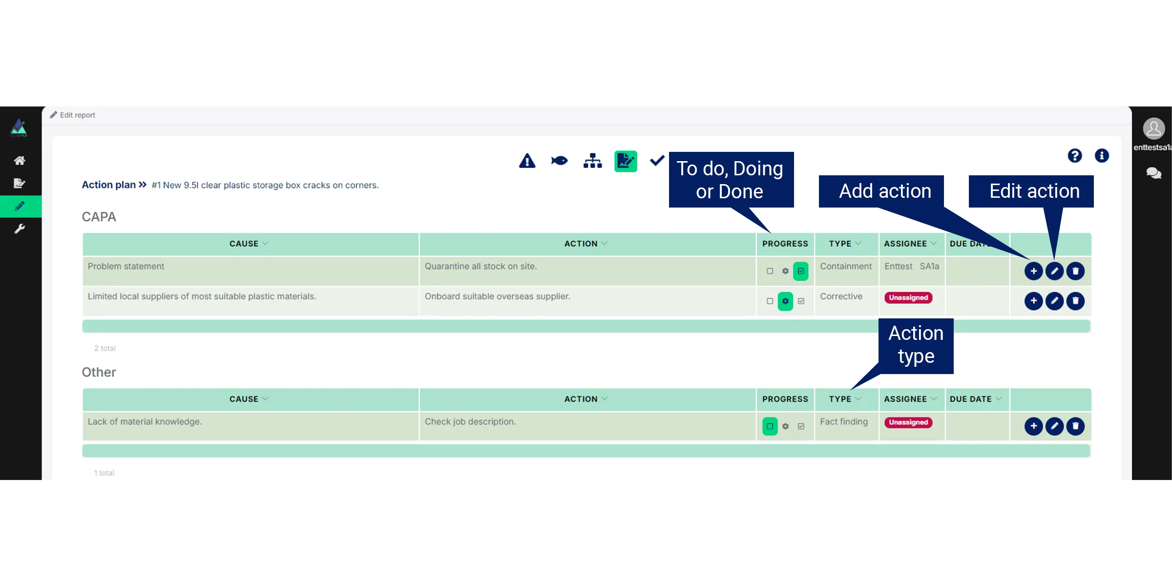 - All root causes have at least one action.