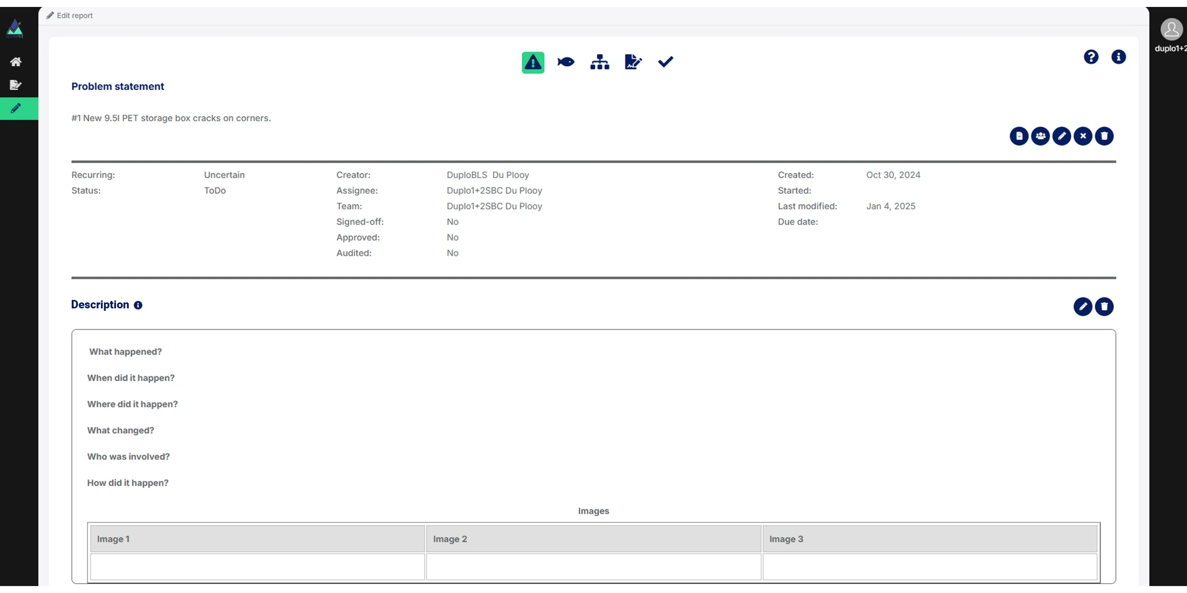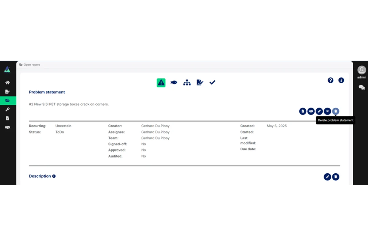 During the trial your organization is limited to 3 active RCA’s. Please delete your RCA from Problem statement & Description.