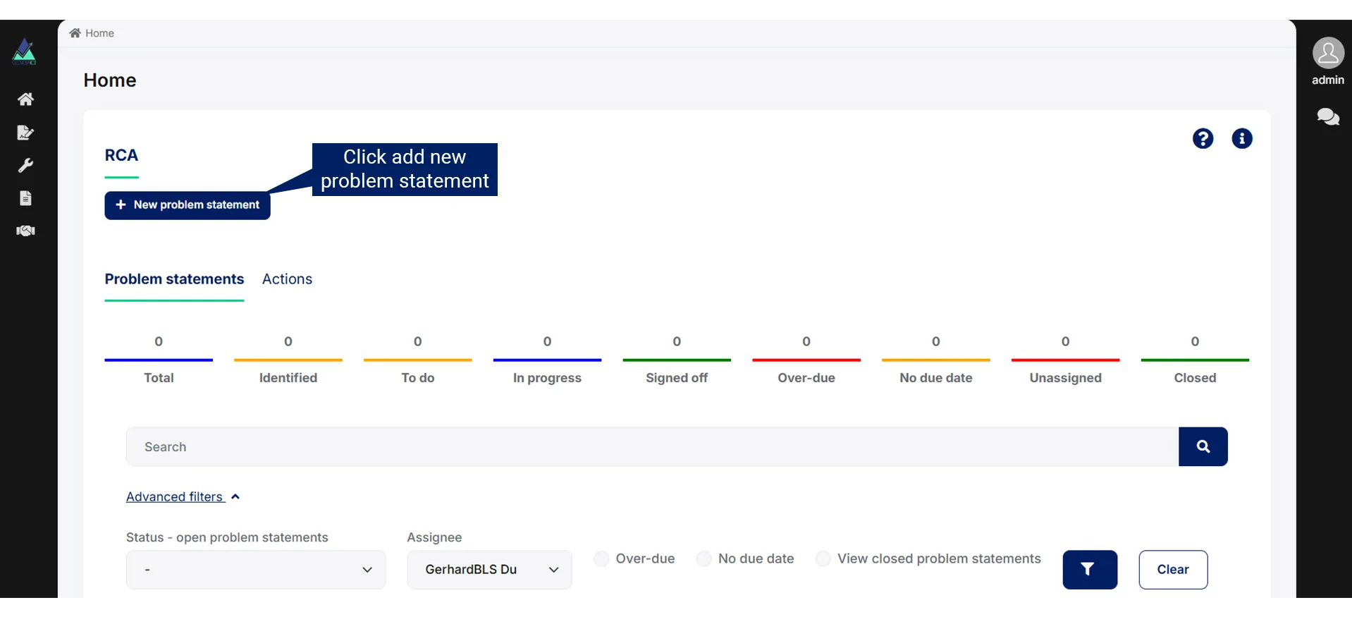 Click Add new problem statement.